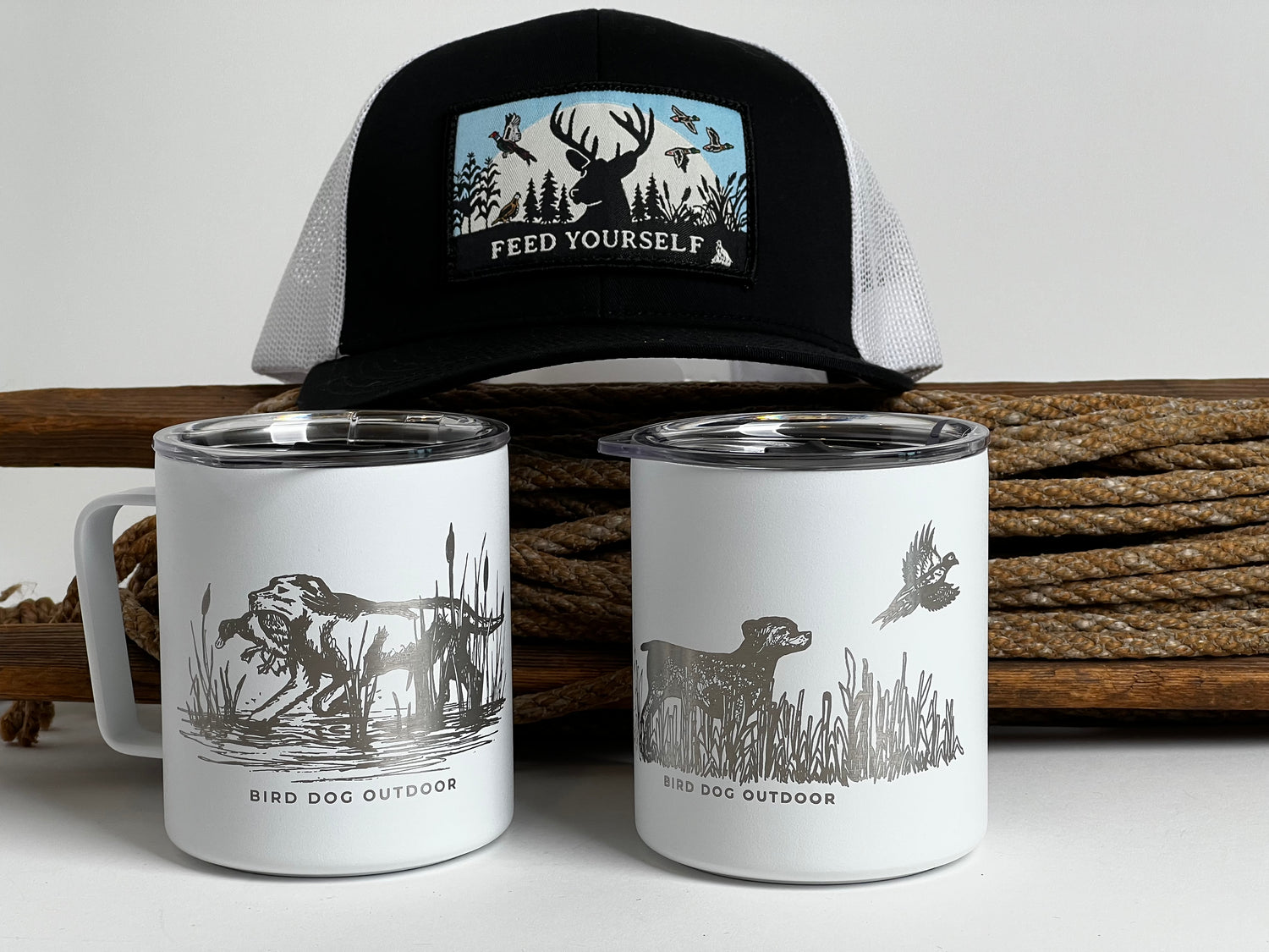 The Bird Dog Outdoor camp cups capture the working dog's best moments. Not only are these the best travel coffee mugs on the market but they’re guaranteed to keep your coffee hot and fresh for hours. To truly up your game, grab the Bird Dog Outdoor Feed Yourself hat to complete the statement. We promise you’ll be the best looking person at hunt camp.